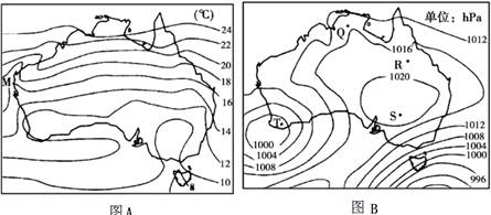 2、单选题  读“澳大利亚某季节等温线图”和“海平面等压线图”,完成下题。