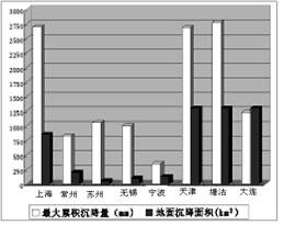 3、单选题 该图是我国部分沿海城市地面沉降的统计示意图,读图完成问题。