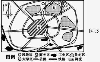 3、综合题 图15为“我国某城市某住宅区在城市中的区位及其内部布局图”,读图完成下列问题。(6分)