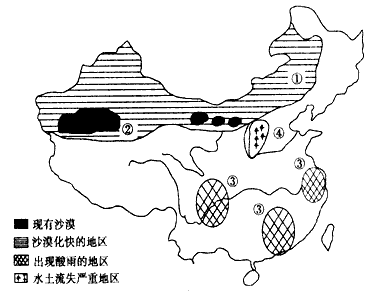 2、综合题 读下图,分析回答我国一些地区出现的环境问题的原因及治理措施。