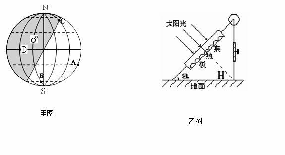 4、综合题 读甲图(阴影部分为黑夜),回答下列问题: