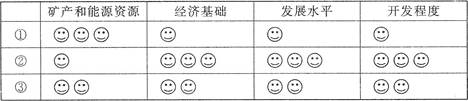 2、单选题 20世纪80年代,国家根据全国各地的自然条件、经济基础、发展水平和对外开放程度,把全国划分为东部、中部和西部三大经济地带。回答问题。1.下表表示划分我国三大经济地带的各项指标(“J”的多少表示优势的大小)。据表判断,我国东、中、西部三个经济地带的排序与表中数码相符的是