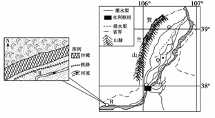 1、综合题 2008年9月23日宁夏各界人士在银川举行盛大集会,庆祝宁夏回族自治区成立五十周年。结合宁夏部分地区示意图,回答下列问题。(14分)