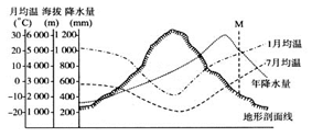 1.有关图中山地的叙述,正确的是2.根据气温和降水状况判断,在山麓M地区的自然带最可能的是
