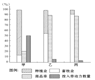 5、单选题 下图是“甲、乙、丙三个地区农业基本情况比较图”,完成下列各题。