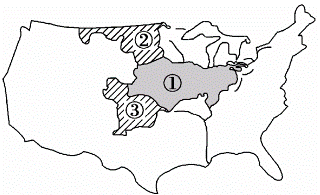 (1)图中①、②、③三个地区的主要农作物分别是____、____、____。