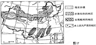 (2)图中②地区荒漠化的人为原因是?;为防治西北地区的荒漠化,我国正在上述地区进行巨大的生态工程建设为?。
