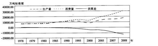 小题3:从图中看煤炭能源消费量增长较快,生产量增长较慢,这主要源于国家老工业基地改造;对能源需求量增加迅速,而许多生产基地面临资源枯竭,总体产量增长缓慢的问题。