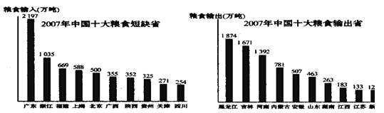 小题1:读图可以看出粮食输出前两位的省份是黑龙江和吉林两省,两省区纬度较高,大部分属于中温带,热量不足是粮食生产的限制性因素,有利条件主要有地形平坦,水源较丰富,土壤很肥沃,本地地广人稀,粮食消费量相对较少,交通便利,机械化水平高,故答案选B。