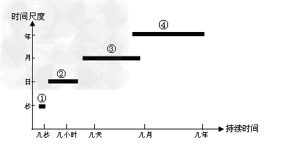 1、单选题 下图表示不同自然灾害持续时间对比示意图,读图回答1 ~2 题。