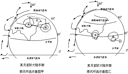 (1)甲、乙两图中,表示一月亚欧大陆东部季风环流的是______图,判断理由是:__________________
