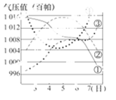 (4)天气系统①过境时,常出现的天气是 。(3分)