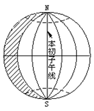 3、单选题 读下图,判断下列问题。(阴影部分表示黑夜)
