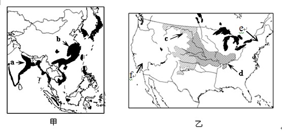 (3)比较甲、乙两图所示的农业地域类型及其农业生产的区位条件。(6分)