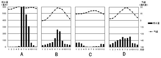 表示b农业区气候的是?(填字母),其气候特征是?。(4分)