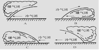 1、单选题 下列四幅图中,正确表示冷锋天气的是