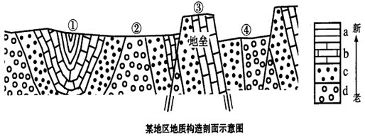 1、综合题 读“某地区地质构造剖面示意图”,并回答问题。