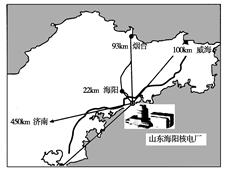 3、单选题 山东海阳核电厂址距烟台市93公里,距青岛市107公里。规划建设2台125万千瓦核电机组,首台计划于2014年5月投产发电,届时年发电量将达175亿千瓦时,全部建成后将成为迄今为止,中国最大的核能发电项目。据此回答下列问题。