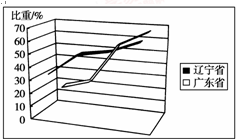 小题1:辽宁省城市化起步早得益于矿产资源的开发,但目前城市化水平低于广东省;1990~2000年间国家逐步开放开发边境城市、长江沿岸城市、和内陆省会城市,故辽宁省城市化发展缓慢的原因之一是缺乏国家政策支持;广东省在提出改革开放政策之后才逐步发展起来,故其城市化起步晚是由于政策原因;广东省后来城市化发展速度快得益于乡镇企业的迅猛发展,即工业化推动了城市化。