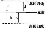1.图示时刻,太阳直射点的地理坐标是2.此日,北京天安门广场旗杆在日出、正午、日落时的日影朝向依次是