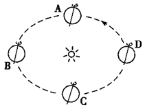 (1)当地球运动到左图中的用A、B、C、D标注的位置时,我国的节气分别是________、________、________、________。