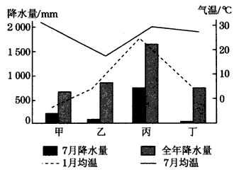 1、单选题  下图为“甲、乙、丙、丁四地气温与降水量示意图”。读图回答1~2题。