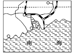 本题解析:根据图示的地理位置判断,该地区我国我国南部沿海地区,冬季为图示河流的枯水期,则河口入海径流量减少,则可能出现咸潮。