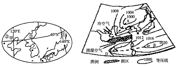 (3)从气压分布状况看,该区A、B的天气系统名称分别是_________、________。