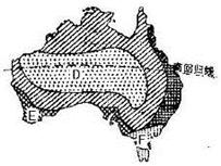 小题2:澳大利亚自然地理分布图所表示的自然环境要素是________,呈______状分布。其中D表示________________,E表示_____________;F表示________,其位于大陆的东岸,原因是_____________________________。