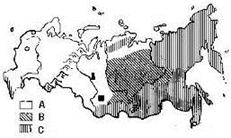 小题1:俄罗斯自然地理分布图中,图例ABC所表示的自然环境要素是________,其中图例B分布区域的名称是________。