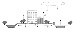 从图中可知a表示地表径流、b下渗、c地下径流、d蒸发,用透水材料铺设地面后可增加下渗量,b增加,B正确。由于下渗量增加,地表径流a减少,地下径流c增加,蒸发d增加,A、C、D错。