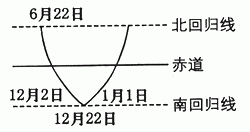 2、单选题 读下图,12月2日至次年1月1日这段时间内,太阳直射点移动的规律是