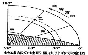 (1)比较甲、乙、丙三地,一年中昼夜长短变化最小的是?地。(1分)