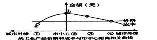 小题2:图中成本曲线由b到a变化最主要的原因是地租价格逐步降低,距离市中心较近,地租较高。市中心交通运输更便利、更接近消费市场。