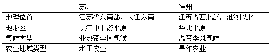 (3)读“20世纪90年代以来苏州、徐州经济发展水平比较”表,比较两地“GDP”和“GDP每增加亿元占用的耕地面积”变化的共同性和差异性。