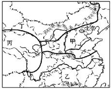 小题3:图示甲为北方地区,乙为南方地区,均为我国东部季风区,具有雨热同期的特征;故A错误;乙为我国南方地区,丙为青藏高寒区,两者之间具有明显的差异性,B错误;丙为青藏高寒区,丁为西北干旱半干旱地区,故两者之间具有明显的差异性,C正确。区域的环境变化可能对周边地区的环境产生影响,D错误。