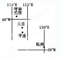 4、单选题 2011年11月29日,杭州某地理考察团去山西进行实地考察,因太原降雪、机场封闭,飞机改飞呼和浩特机场降落。再结合图完成以下题。