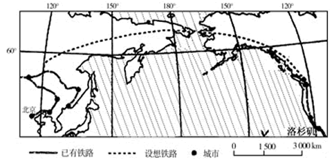 5、单选题 白令海峡是亚欧大陆与北美大陆相距最近处,如果在这里修建一条铁路同原有铁路连通,可以为两大陆提供一条便捷的陆上交通通道。读图,回答1—2题。
