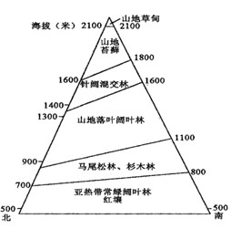 4、单选题 下图为我国某山地垂直自然带示意图,读图回答1—2题。