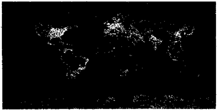 5、单选题 读“世界各大洲夜间照明状况图”,回答问题。