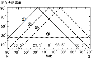 (1)由图知①太阳直射南回归线,应该为冬至日;④是由夏至向东至的过程中应该为秋分日。