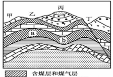 本题解析:1.a处岩层向上弯曲,为背斜,b处岩层向下弯曲,为向斜;背斜是良好的油、气储存构造,向斜是良好的地下水储存构造。在a、b两处采煤,最容易发生的矿难事故分别是瓦斯爆炸和透水事故。