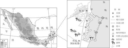 3、综合题  墨西哥是拉丁美洲的第三大国。读图文资料,回答下列问题。