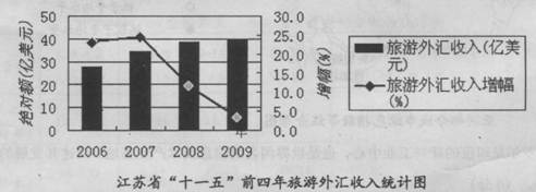 (2)据图说明“十一五”前四年江苏旅游外汇收入变化的特点。(4分)