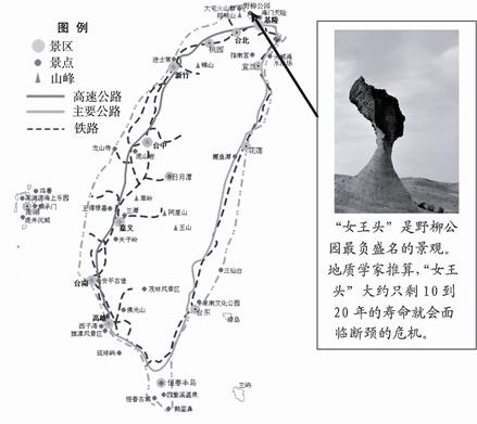 自2008年7月以来,大陆31个省区市赴台团体旅游市场先后开放,2011年6月28日又正式启动试点开放大陆居民赴台个人旅游。读下图并结合所学知识回答(10分)