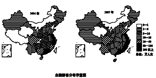 (1)2004年到2007年台胞游客数量空间分布的总体特点是?;大多数省区的台胞游客数量呈现?的态势。2004年以来,台胞游客数量一直居首位的广东是省,其主要原因是?。(6分)