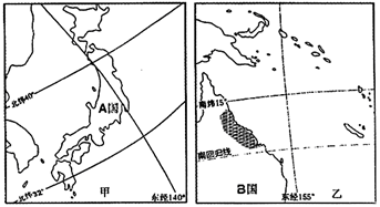 小题1:A国为日本,日本冬季降水的空间分布差异为:西北多东南少。其原因是:冬季岛屿的西北岸为迎风坡,多地形雨,东南岸为背风坡,降水少。