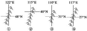 2.结合经纬度位置判断,①为大兴安岭,②为太行山;③为巫山;④为雪峰山。该四条山脉为我国东部季风区和非季风区的分界线,故东南侧为夏季风的迎风坡,故降水量较丰富。