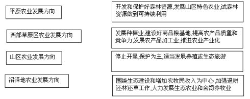 (2)?解析:因地制宜发展农业。调动三区开发农业潜力的优势因素(自然和经济因素)。(3)解析:考查各地农业的发展方向。