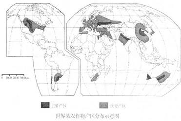 小题2:由上题结论,该作物小麦在西半球,主要分布在北美洲的中部大平原地区,该地区农作物主要是小麦和玉米,所以该地区的农业地域类型是商品谷物农业。